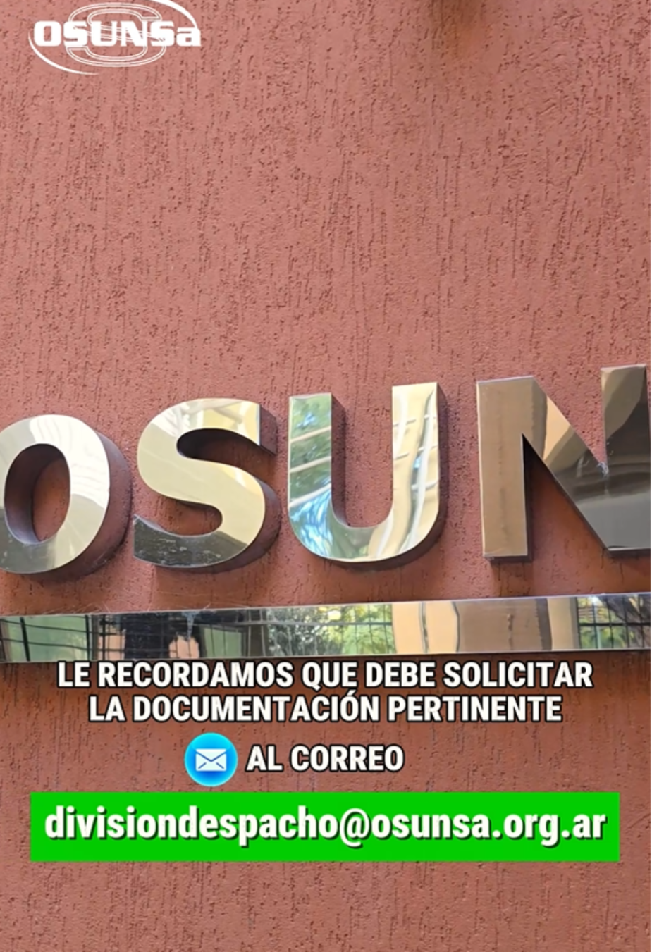 📢 Comunicado importante para nuestros afiliados OSUNSa informa que, a partir del viernes 17 de octubre de 2025, estará disponible la documentación correspondiente a la Asamblea Ordinaria. 📑 📌 Podrán solicitarla a través del correo: 📩 divisiondespacho@osunsa.org.ar ✅ Indicando en el cuerpo del mail: → Nombre completo. → DNI. → Correo electrónico al cual desean […]