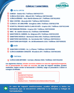 12 septiembre, 2025 Prensa 0 Comments ✅ Estimados afiliados: 🏥 Les acercamos la grilla de las clínicas y sanatorios que mantienen convenio con nuestra obra social. 📍En color rojo, se mencionan las clínicas a las que puede recurrir ante emergencias, sin presentar orden de consulta.