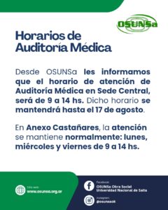 #AuditoríaMédica #Horarios #SedeCentral #osunsa