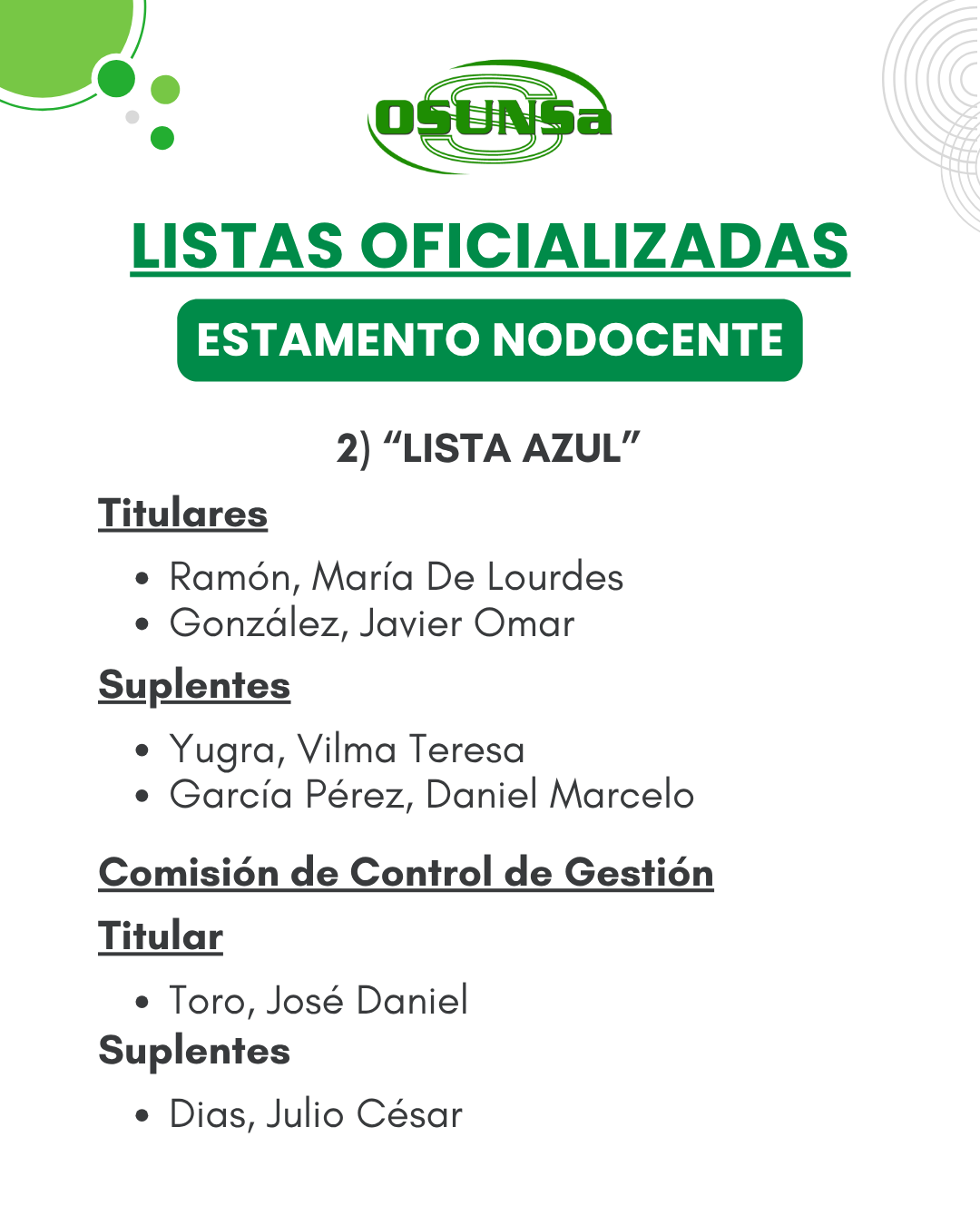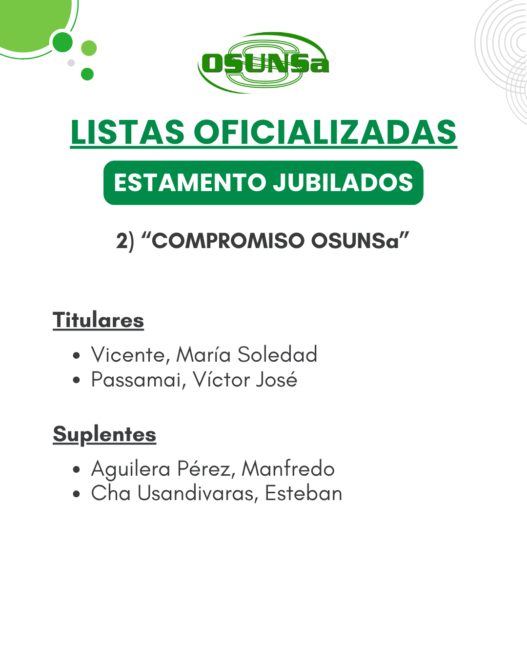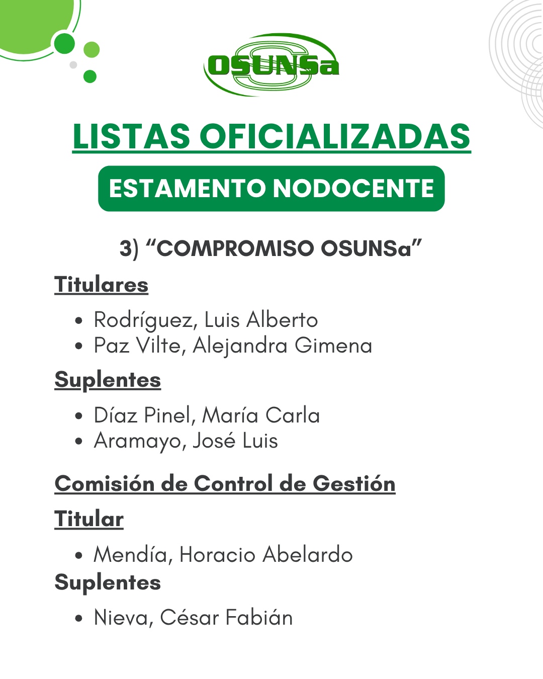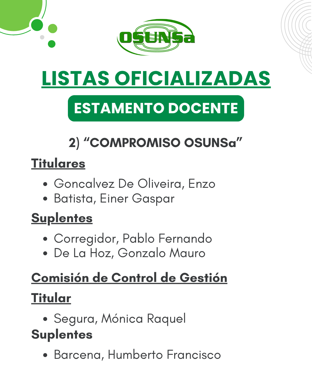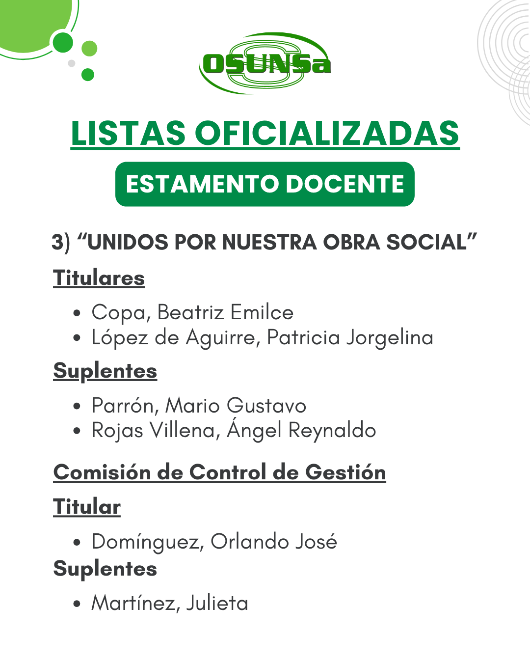 🗳️ Les acercamos las LISTAS OFICIALIZADAS que participarán en las ELECCIONES OSUNSa el día miércoles 26 de noviembre.